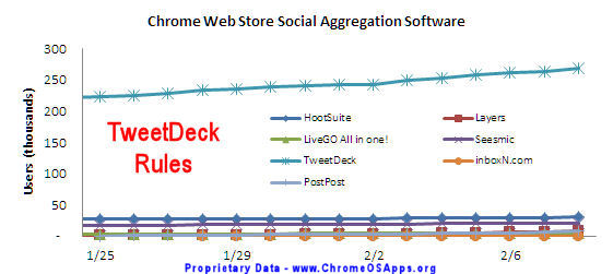User counts of these Apps show there is an obvious category leader. TweetDeck has about 10 times as many Users as its next largest competitor - HootSuite.